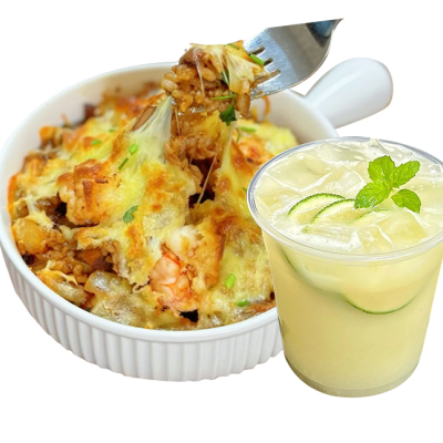 1.Riz gluant cuit au four aux crevettes et au fromage