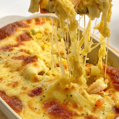 香肠虾芝士焗饭 Riz gluant cuit au four aux crevettes et au fromage